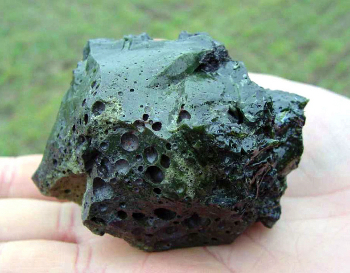 Close-up of black-green "stone" clearly showing glassy surface & multiple circular