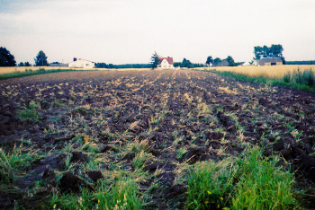 BLT requested two samples of the stone, taken from representative areas of its surface, as well as soil samples taken from the grassy area where the stone had been found and also from the plowed field. In the spring of 2003 two soil samples were taken, both at a depth of about 4 inches -- one from beneath the grassy area and the second from the middle of the plowed field, about 25m from the grassy area and closer to the farmhouse. All samples were then shipped to BLT in the U.S. and received in June, 2003.