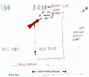 Retreival of "Stone" by Grandson, Milosz: At breakfast a few hours later Mrs.Kuss told her son, daugher-in-law and grandson Milosz what she had seen the night before, explaining exactly where the UFO had gone down. After attending to his farm chores Milosz, who was 11 years old at the time, walked down to the end of the field to see if he could find any evidence of what his grandmother had seen just a few hours earlier.