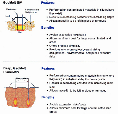 Features & benefits of two different technolgies for in-situ vitrification, developed
