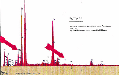 On June 3, 2003 the two "stone" fragments were submitted to BLT consultant Nick Reiter of the Avalon Foundation for SEM/EDS. A few weeks later the soil samples were also sent to Mr. Reiter, whose report follows.