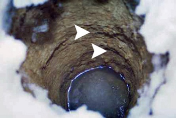 What Adam found in the fallow field -- directly beneath where his grand-mother indicated the UFO had hovered -- was a 30cm-diameter round hole which he measured to be in excess of 5m deep, with about 1m of standing water at the bottom. And, although it appeared that the hole had been "drilled" (he could see a "spiral threading" inside the hole down to the water level), he could find no remnants of the dirt which must have been removed to create it. There was absolutely no soil scattered anywhere over the snow-covered field or around the hole itself, nor could Adam understand how there could be water present in the hole in January, when the temperature was below freezing.