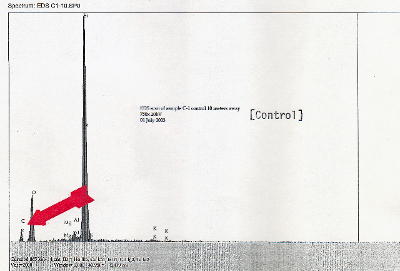 Because the "control" sample was taken from surface soil and the hole sample taken from approximately 0.5m down inside the hole, the differences noted by the EDS and FR-IR tests cannot be clearly evaluated. A true "control" should have been taken at the same depth as the hole sample.
