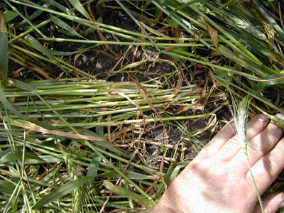 | Plant bases along the perimeters of downed areas were not crushed, as