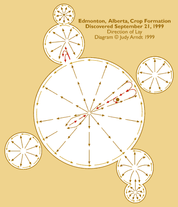 ground was found at the center of the radially-laid crop.