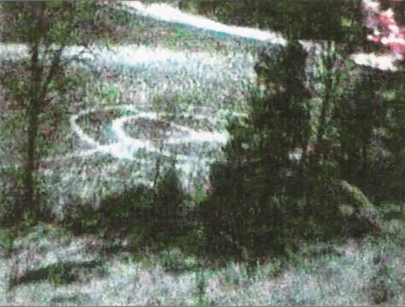 Event Description: A 14m overall length, double-ring design with intersecting right-angled pathways, one of which extends West/Southwest beyond circular pattern. Rings and pathways created by ice deposits on top of grass which were approximately 30 cm. wide by 2-3 cm high (see Figs. 1-3).