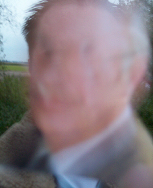 Over many years Robbert has developed the habit of aimimg the camera at his own face during times when he feels a particular "energy" is present. On the second afternoon of Dr. Roll's visit we were all at Robbert's "special" field and Robbert decided to do this. In broad daylight--and with Dr. Roll and me watching--six images (taken consecutively over about a minute) appeared on Roll's camera which show at first a "smokey" substance in front of Robbert's face which then develops into a man's face superimposed over Robbert's.