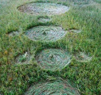 All three men then walked down into this field on the left and immediately discovered a new long "pictogram" in the lush grass. They all reported that, in spite of the fact that it was cold and their shoes were wet, their feet and legs had become instantly quite warm as they entered the formation.