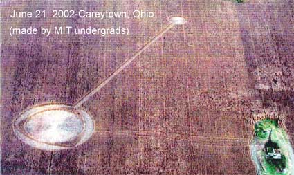 I would not have reported these tedious, discouraging facts had it not been for my subsequent experiences with various MIT officials and representatives. I had relied upon MIT's reputation as an honorable institution, whose members were imbued with genuine curiosity, intelligence, and dedication to scientific principles. Because of this apparently foolish bias I had expected that, since our research has been conducted in a manner consistent with mainstream scientific protocols and by credentialed scientists--and, further, since it was known that our results are published in peer-reviewed journals, we and our work would be treated with basic respect. Not necessarily the respect of the TV personnel (most of whom are not very well-educated), but of the MIT personnel involved. It never occurred to me that any MIT students or faculty, or administrative personnel, would deliberately participate in something that was ethically shoddy. On October 8, 2002 the web-site MIT News ran an article, "Crop Circles: MIT's most ambitious hack?" No author's name was presented with the article, but this photo ran as an illustration: