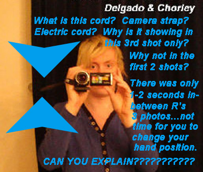Then Stan slowly backed farther away from Robbert until he was standing against the dark blue curtain, with the videocamera still running continually and aimed directly at Robbert the entire time. Almost immediately Robbert then took 3 photos in a row -- all three images only seconds apart -- and this time Dave Chorley's image appears first, then Delgado's in the second shot, and finally Stan alone (in a totally normal photo) in the third shot.