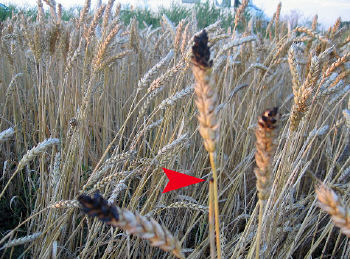 Red arrow points to location of 3 burned seedheads & blackened