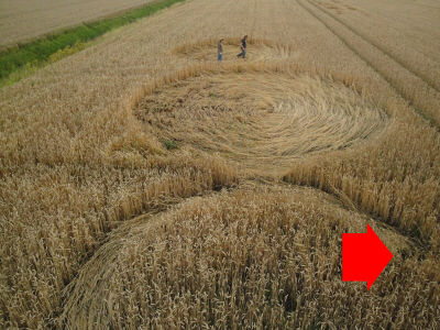 I have tried many times to understand better what this "special feeling" is that Robbert experiences when new circles are occurring and I asked him, again, if he could describe it in any greater detail to me. Robbert replied that when circles are forming he feels the presence of a "big soul group"; he also said that, in this case, as he and Ellen reached the field the air felt "very busy" and "full of energy" and, as Ellen was parking the car, he saw (as he often has in the past) a flash of light directly over the field in which he and Ellen then immediately found the new crop circle.