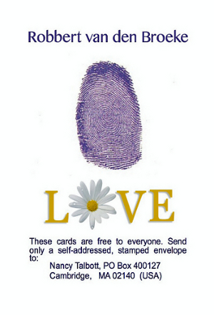 Robbert's Netherland friends did make such a card for him, in Dutch, for his clients there. And, when a Canadian supporter of Robbert's work heard about these cards, she offered to design and print up the same sort of card-in English--for his friends in other parts of the world.